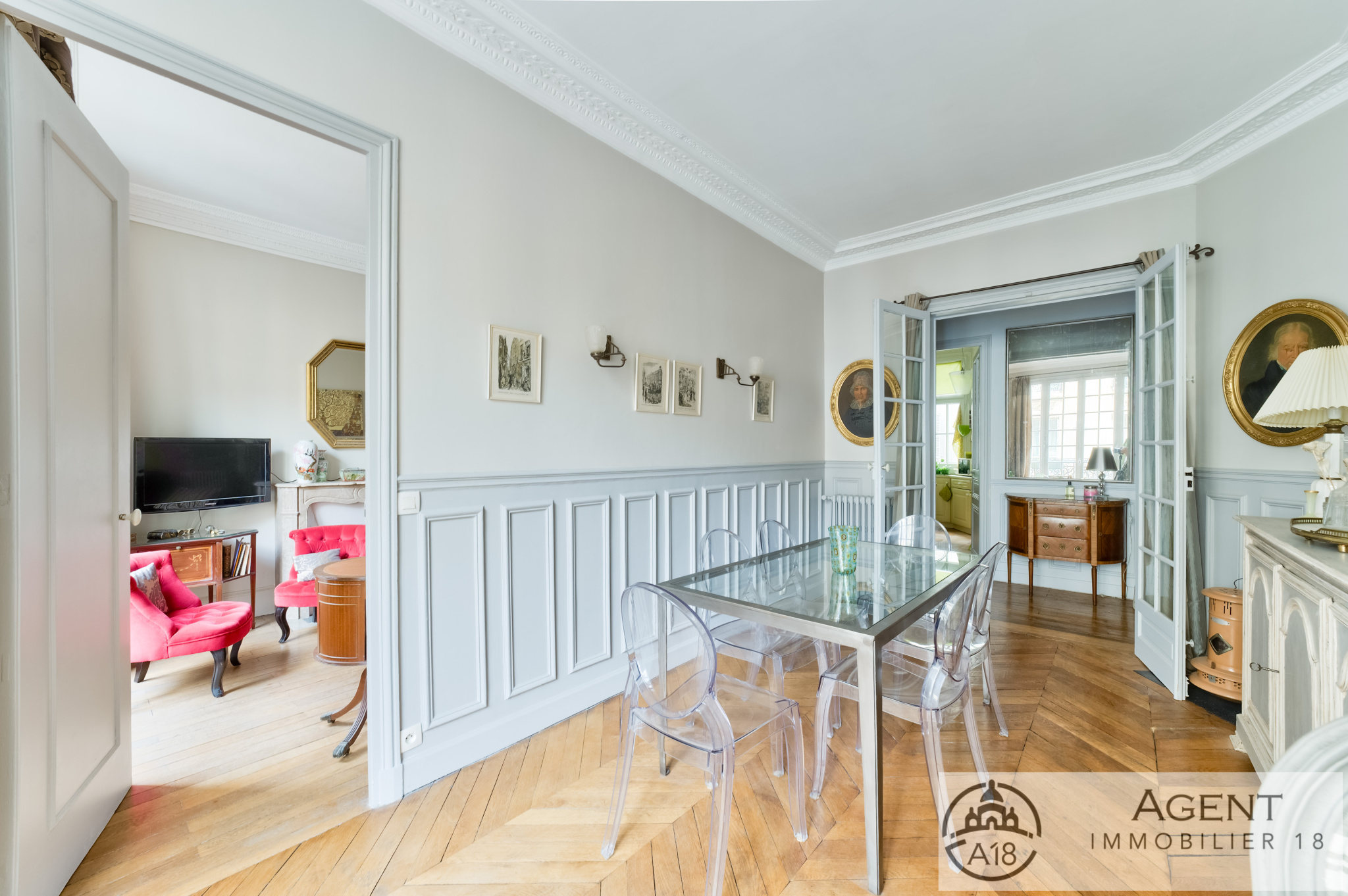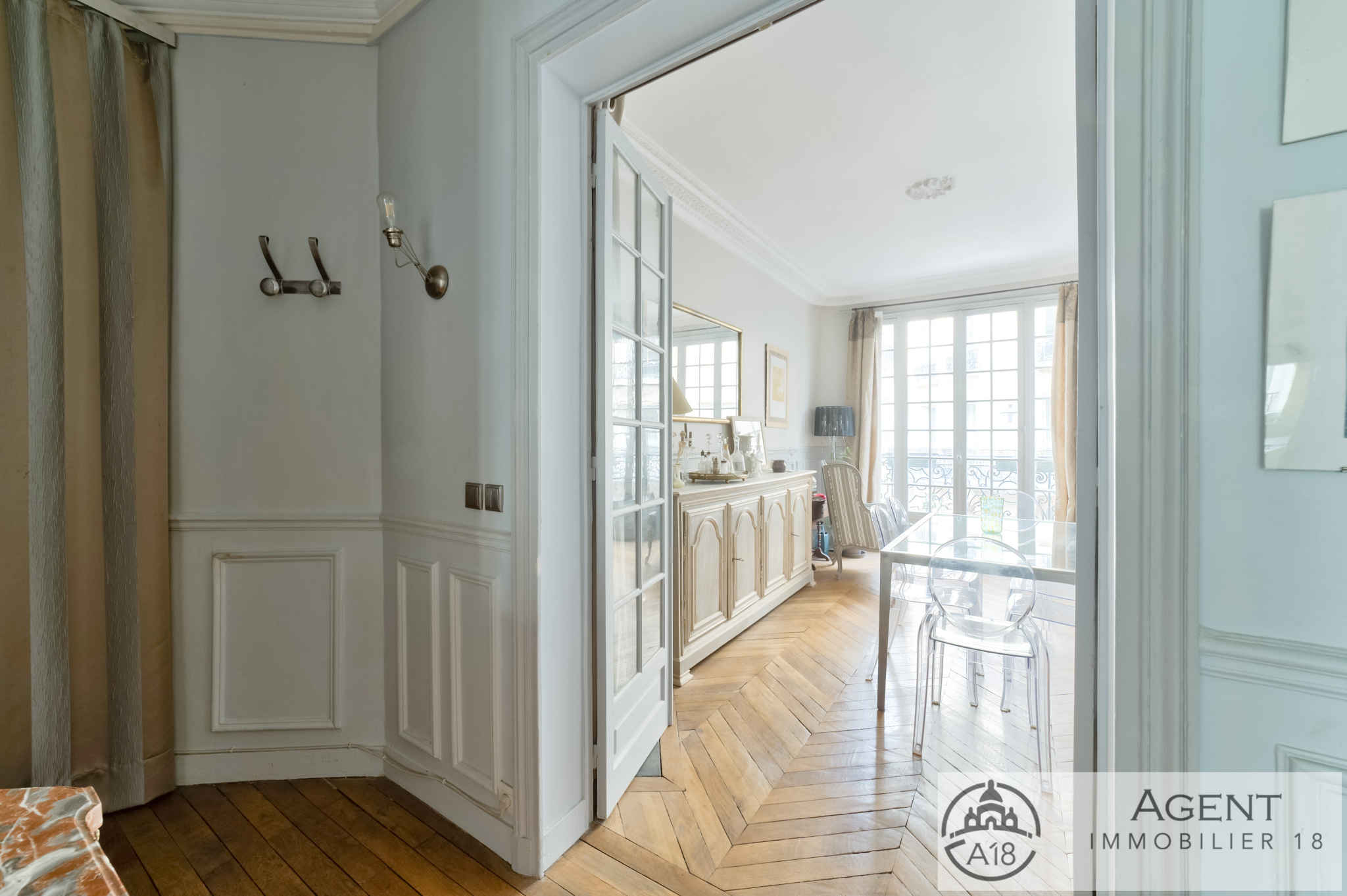 Rue Lamarck, dans un très bel immeuble en pierre de taille, vous trouverez au deuxième étage avec ascenseur un magnifique appartement avec deux balcons.