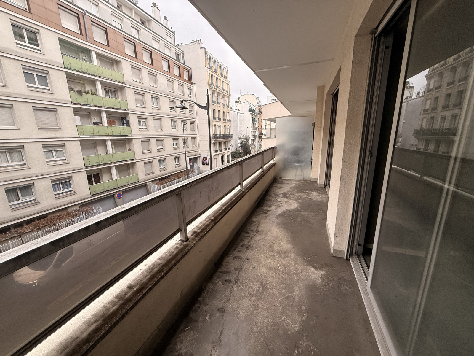 Rue Stephenson (Paris 18e), au 2ᵉ étage avec ascenseur, découvrez cet appartement familial de 68,74 m² Loi Carrez, traversant Est/Ouest (Est sur rue, Ouest sur cour) et bénéficiant de deux balcons (7,9m2 et 4,67).